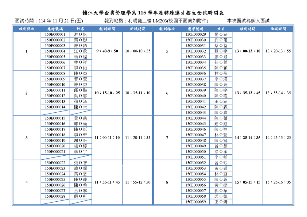 詳細報到及面試時間請參考下圖及附件,請務必點閱。